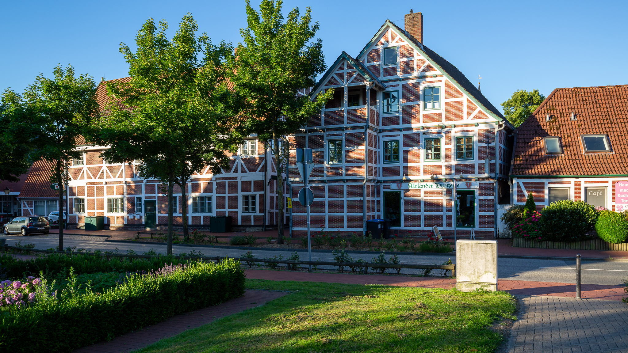 Hier im Alten Land scheinen die Uhren langsamer zu gehen, gepflasterte Straßen säumen den alten Ortskern. Zahlreiche wunderschöne Altländer Fachwerkhäuser zeugen noch heute von dem Wohlstand, den der fruchtbare Boden und das milde Klima den Obstbauern einst bescherten.